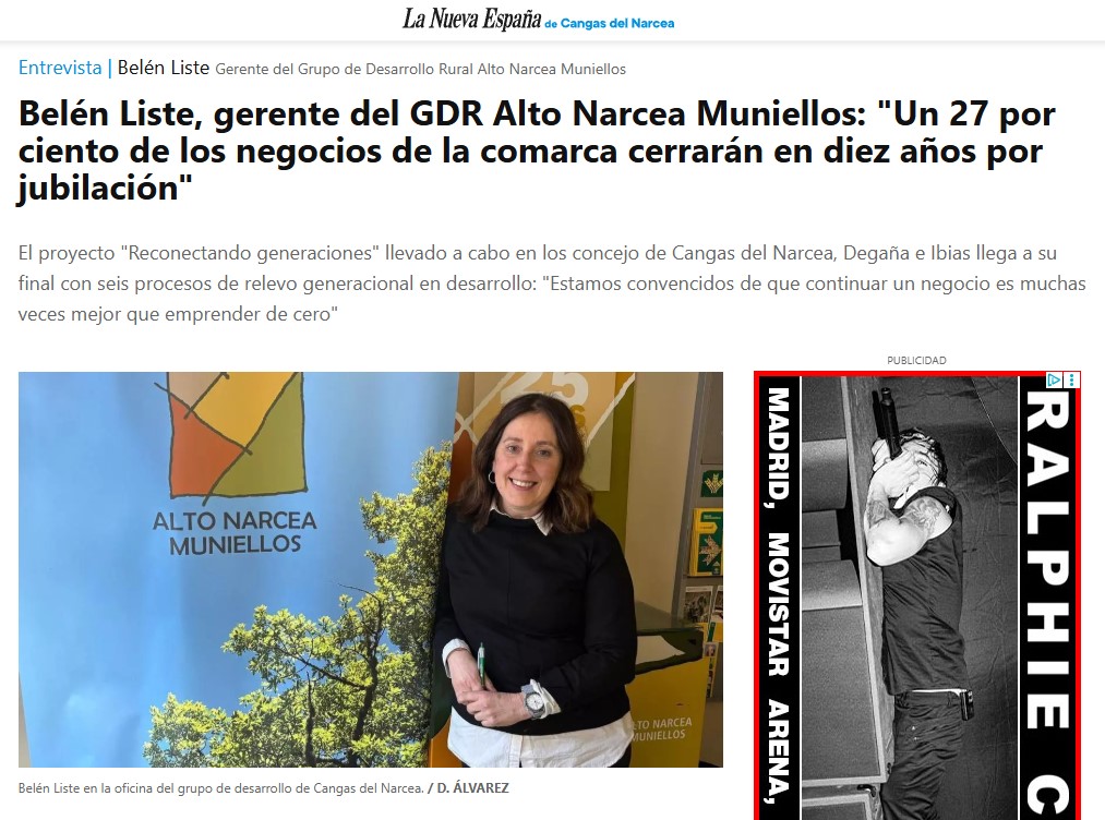 A un día vista para que se cierre el plazo de presentación de candidaturas para el Premio Relevo Generacional que convoca el Grupo de Desarrollo Rural Alto Narcea Muniellos, su gerente Belén Liste Menéndez relata en una entrevista concedida a La Nueva España el desarrollo del proyecto que lo enmarca.